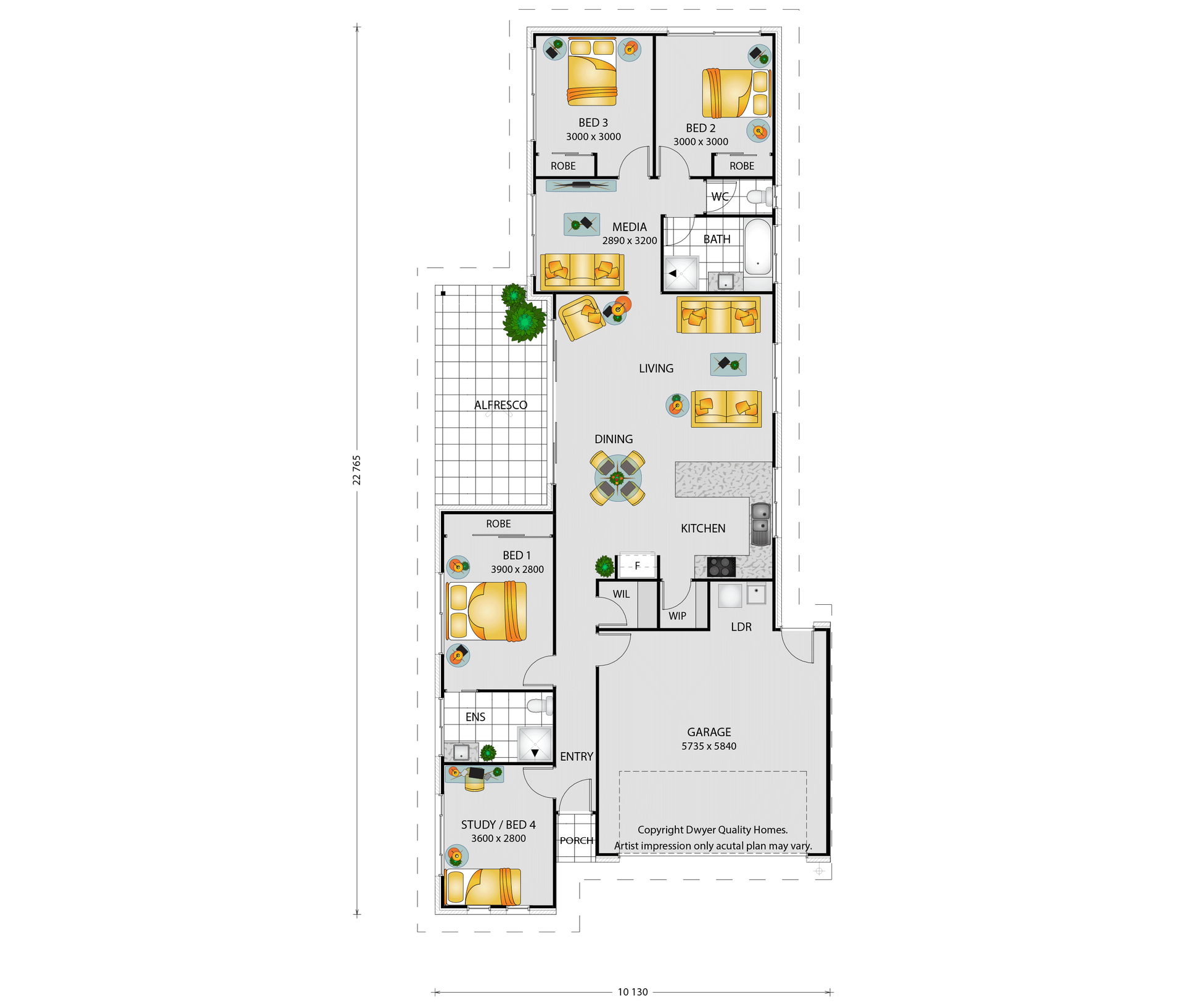 The Benson is a thoughtfully designed, family-friendly home offering generous indoor and outdoor living. Its modern façade creates strong street presence (as shown in the render), while the internal floorplan balances privacy, comfort and everyday practicality.
